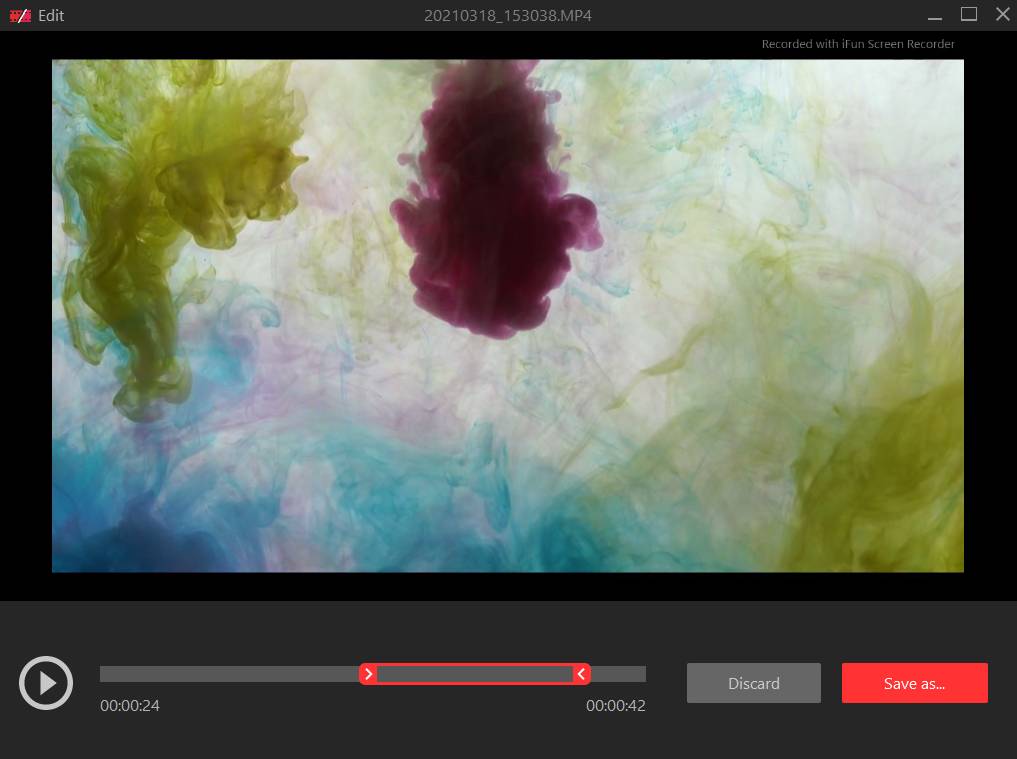 - מיט יפון סקרין רעקאָרדער, איר קענען לייכט רעדאַגירן די פאַרשטעלן רעקאָרדינג איר נעמען אָן אַ ווידעא עדיטינג פּראָגראַם. עס האט אַ געבויט-אין ווידעא רעדאַקטאָר פֿאַר יקערדיק פאַנגקשאַנז ווי טרים, שפּאַלטן, שנייַדן. כאָטש עס איז אַ לייטווייט פאַרשטעלן רעקאָרדער, עס ניצט גפּו ייַזנוואַרג אַקסעלעריישאַן טעכנאָלאָגיע, וואָס מאכט ווידעא רעקאָרדינג און עדיטינג מער עפעקטיוו און סטאַביל.